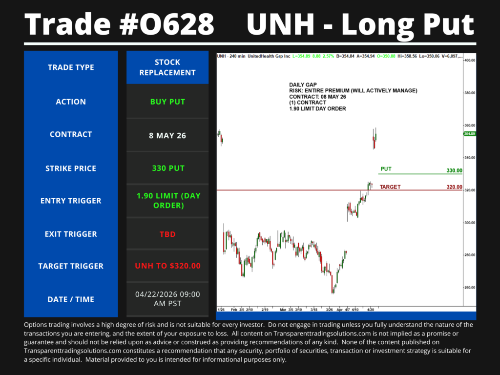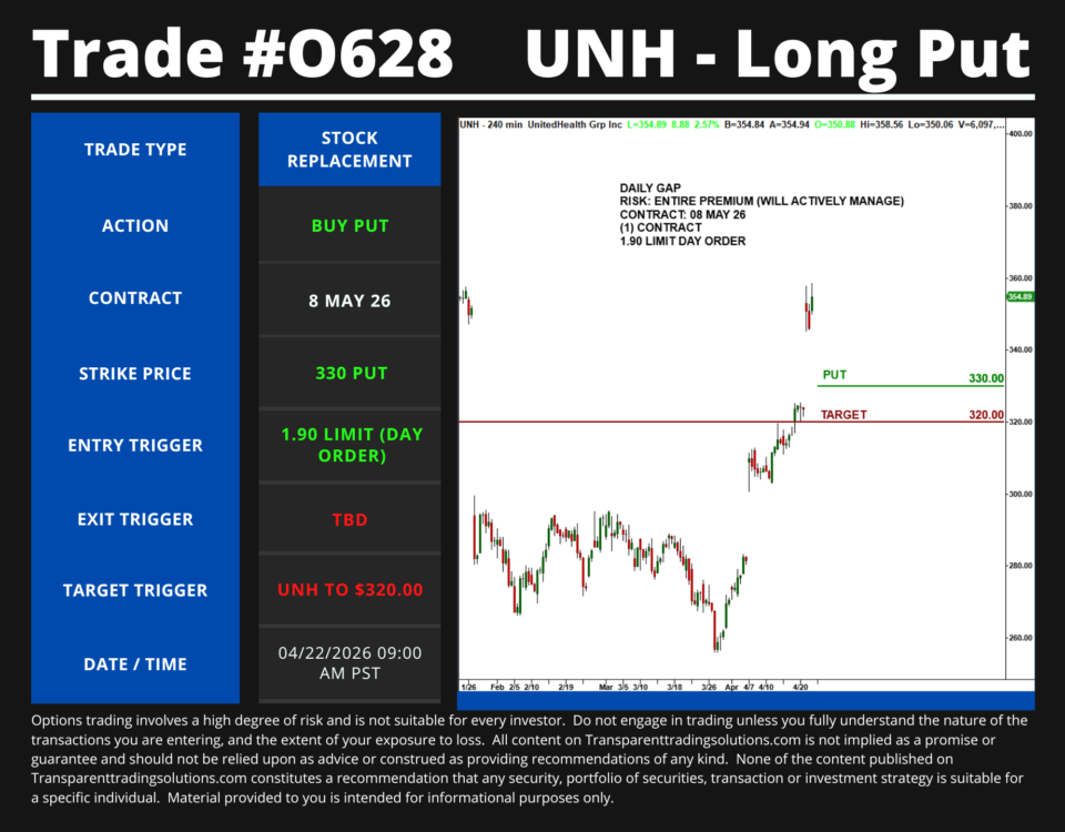 ***OPEN*** OPTION TRADE #O628 – UNH LONG PUT